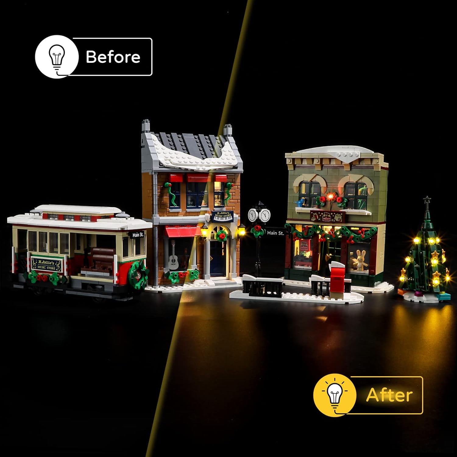 Illuminate your LEGO 10308 Icons Holiday Main Street set with this custom-compatible LED light kit, designed to highlight every shop, window, and festive decoration. Transform your Main Street display into a magical, glowing holiday scene.