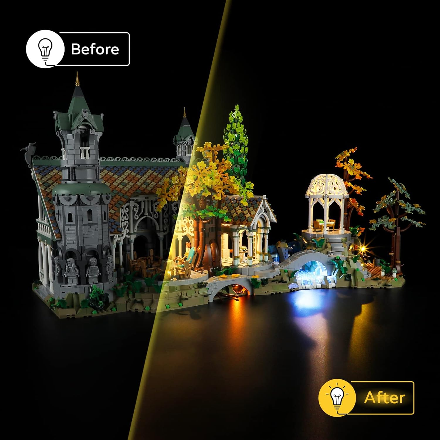 Illuminate your LEGO 10316 Lord of the Rings with this compatible LED light kit. Easy to install, it highlights every intricate detail, creating a stunning and magical display. A perfect gift for LEGO fans and LOTR enthusiasts.