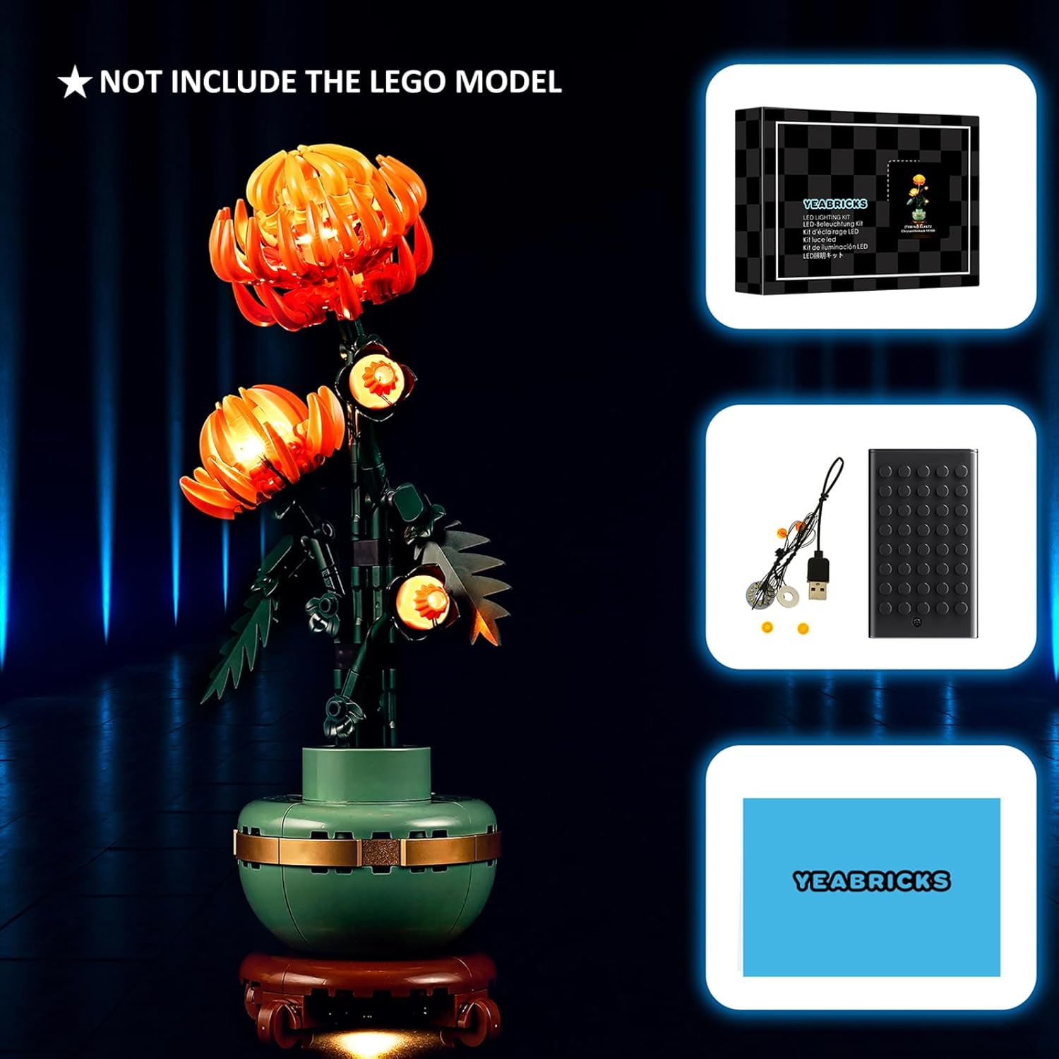 your LEGO 10368 Icons Chrysanthemum with this compatible LED light kit. Easy to install, it highlights every intricate petal and detail, creating a vibrant and elegant display. A perfect gift for LEGO fans, plant lovers, and collectors.