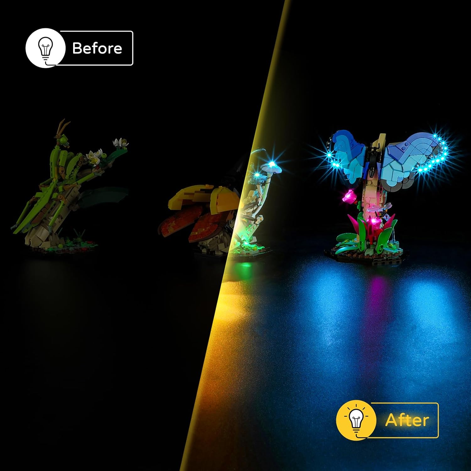 your LEGO 21342 Ideas The Insect Collection with this compatible LED light kit. Easy to install, it highlights every intricate detail, creating a vibrant and striking display. A perfect gift for LEGO fans, nature enthusiasts, and collectors.