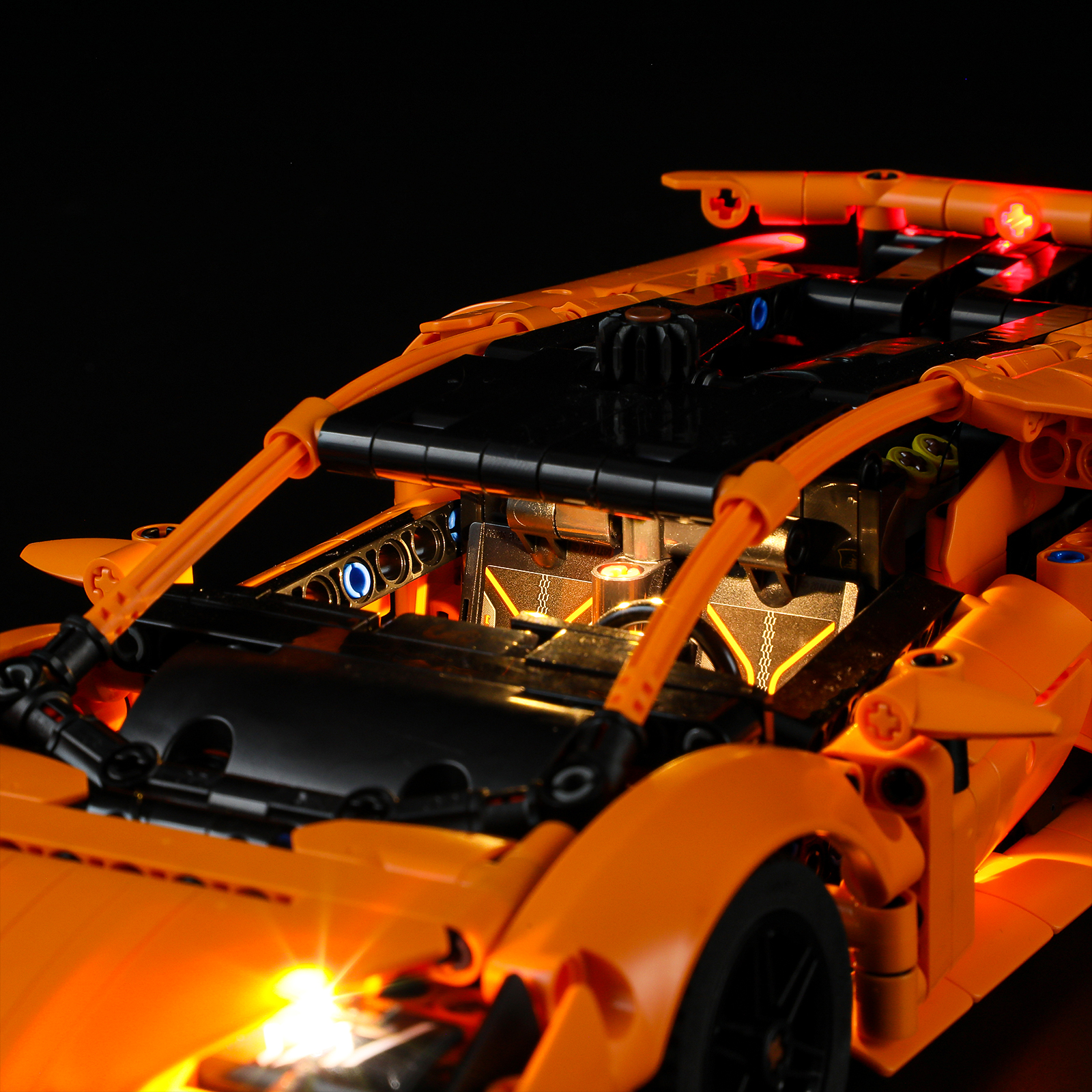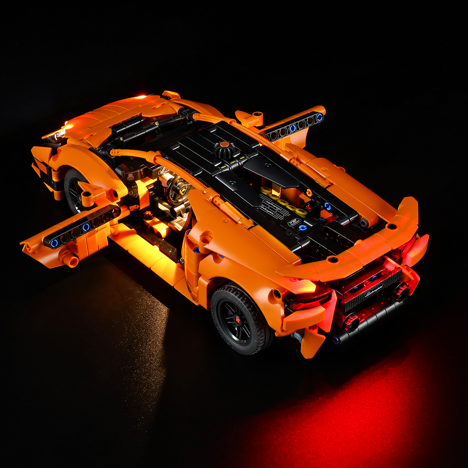 Illuminate your LEGO 42196 Technic Lamborghini Huracán Tecnica Orange with this custom-compatible LED light kit! Showcase every sleek line, aerodynamic detail, and iconic design element for a stunning, high-performance display.