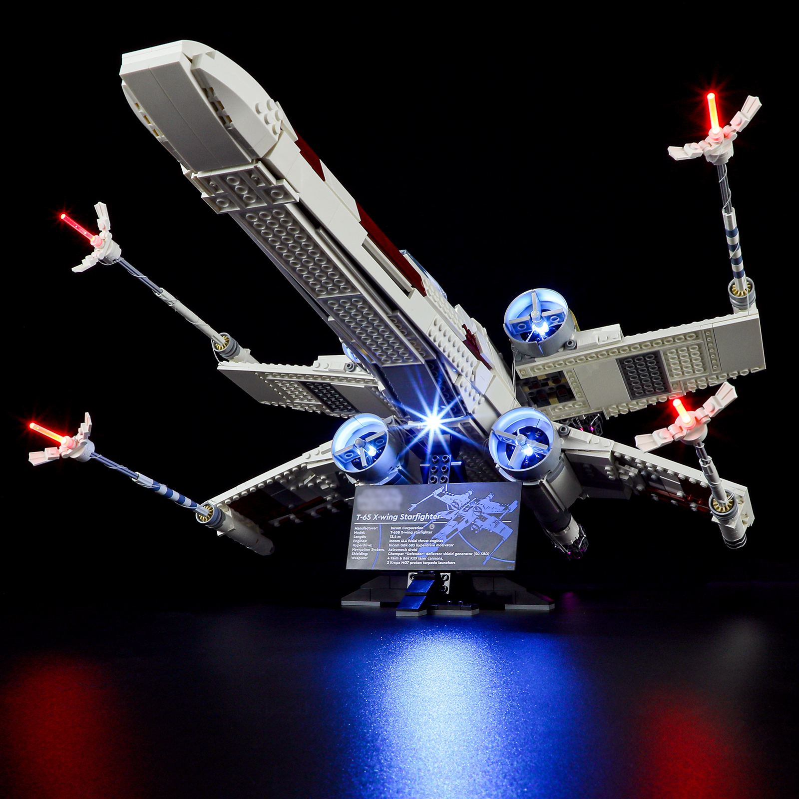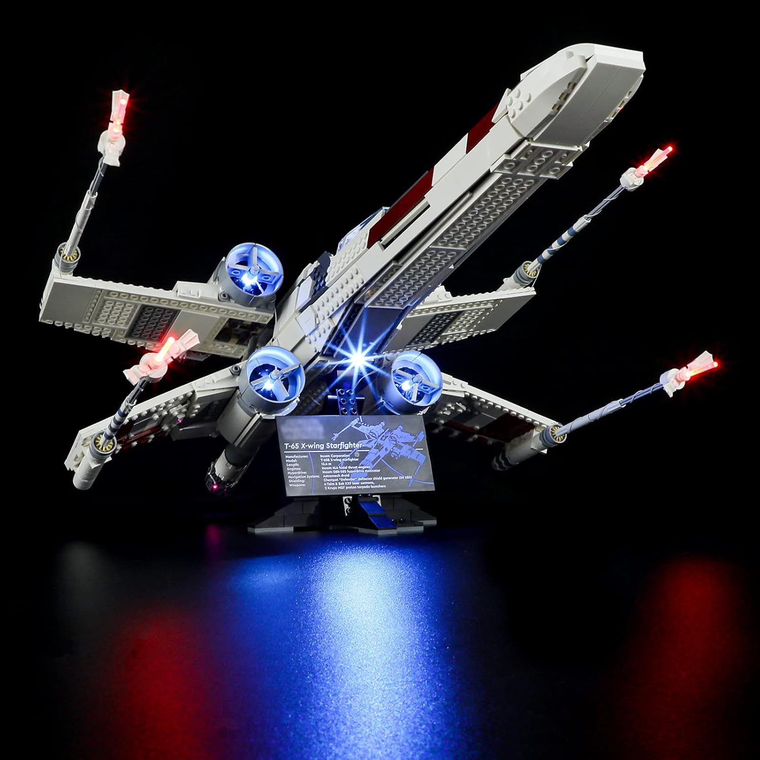 Illuminate your LEGO 75355 Star Wars X-Wing Starfighter with this custom-compatible LED light kit, highlighting every wing, cockpit, and engine detail for a stunning galactic display.