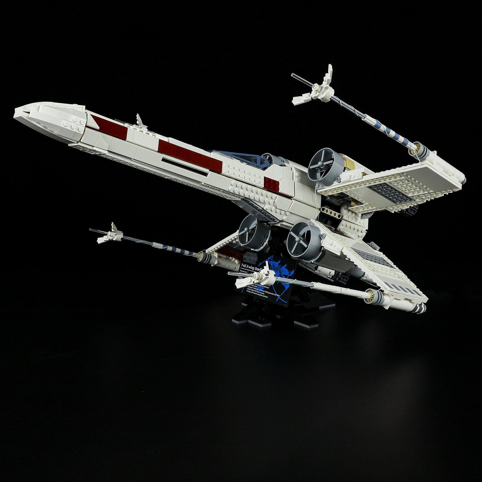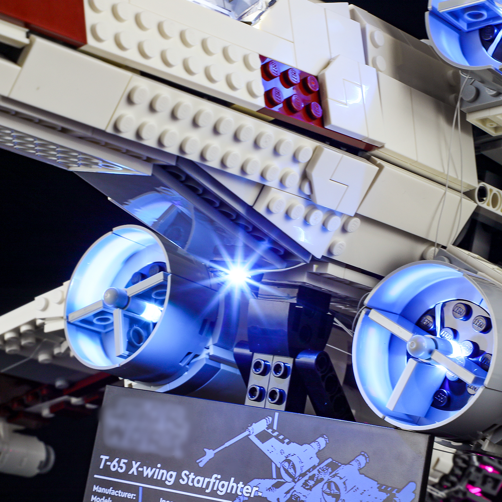 Connect to a power source and enjoy your illuminated X-Wing display.