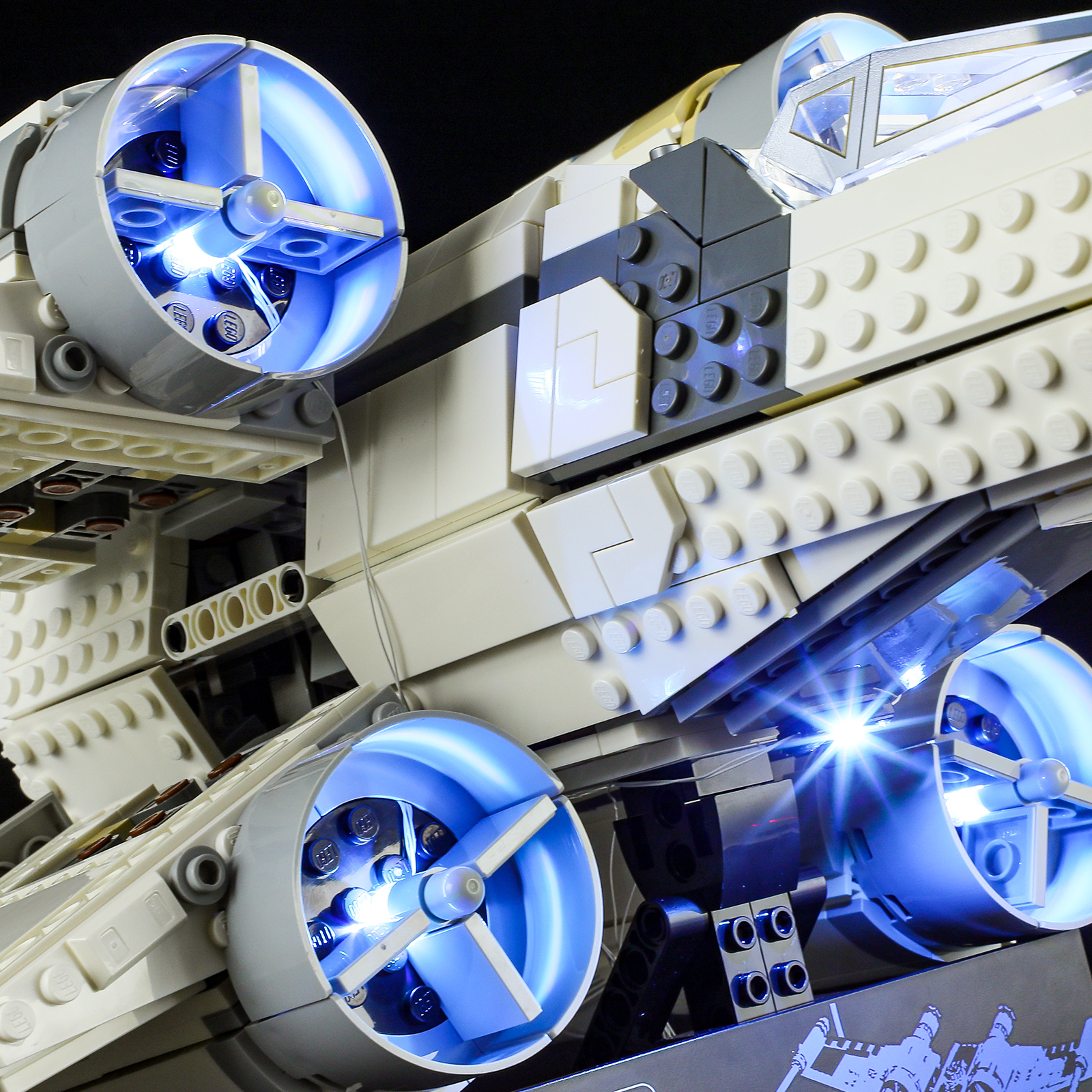 Dynamic Lighting Effects: Bright LEDs enhance engines, cockpit, and laser cannons for a realistic Star Wars look.