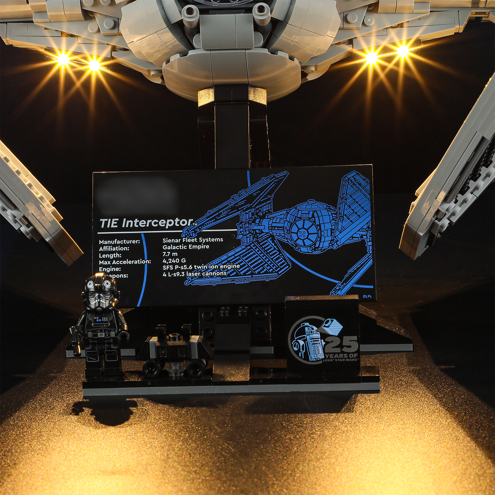 3. Connect to a power source and enjoy your illuminated TIE Interceptor.