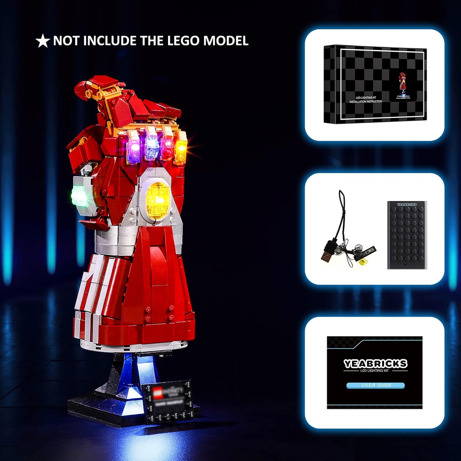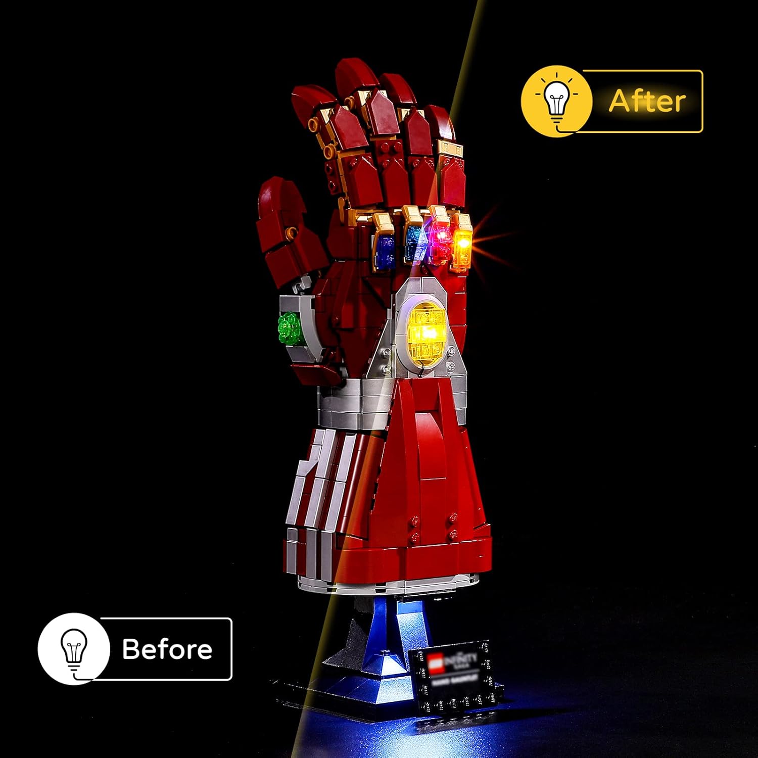 your LEGO 76223 Marvel Nano Gauntlet with this compatible LED light kit. Easy to install, it highlights every intricate detail, creating a vibrant and striking display. A perfect gift for LEGO fans, Marvel enthusiasts, and collectors.
