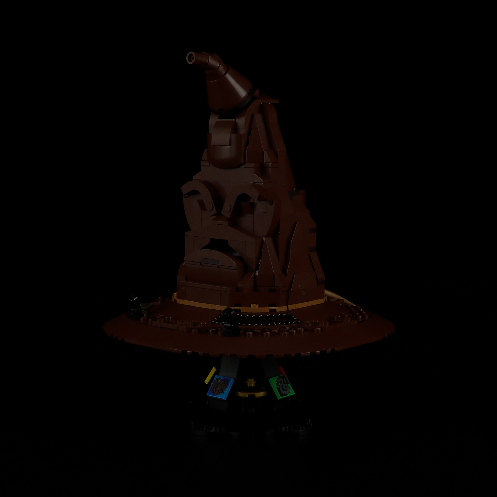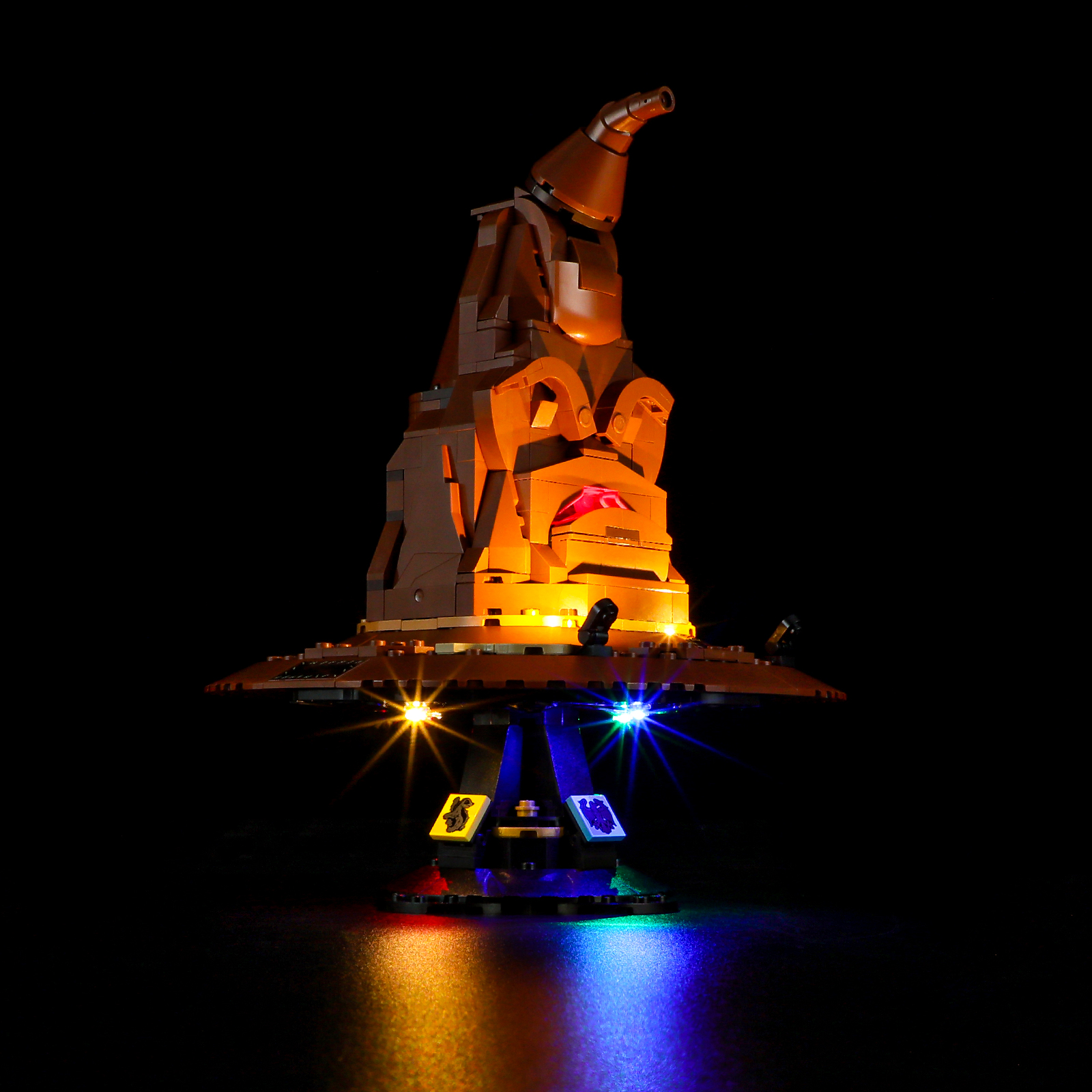 Illuminate your LEGO 76429 Harry Potter Talking Sorting Hat with this custom-compatible LED light kit, highlighting every fold, detail, and magical contour for a striking display.