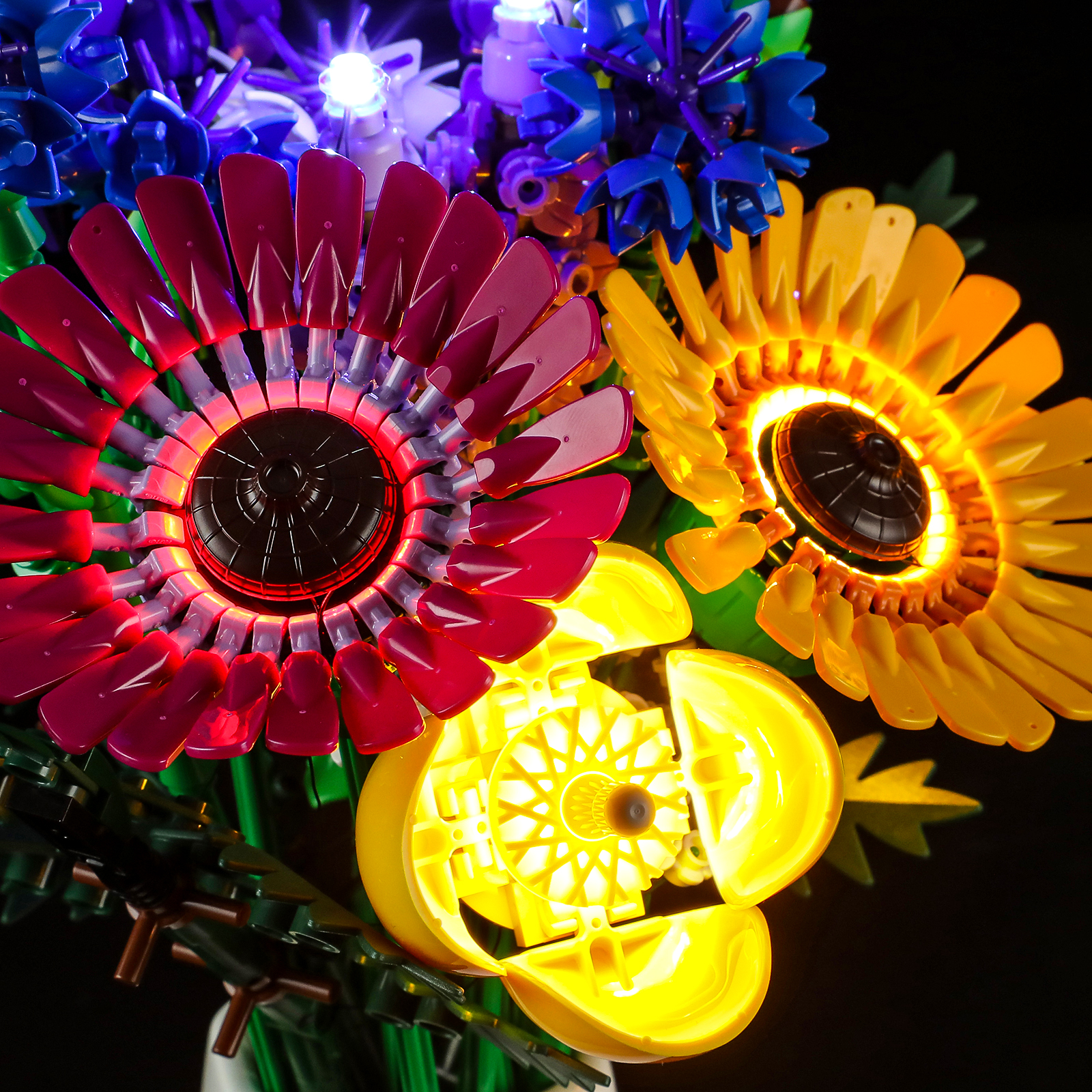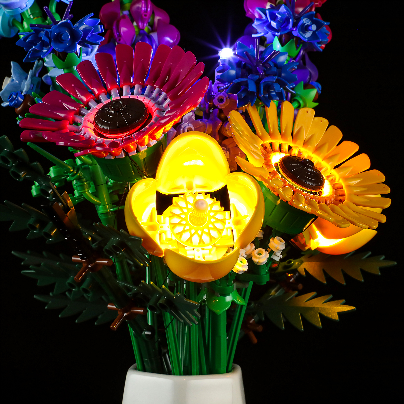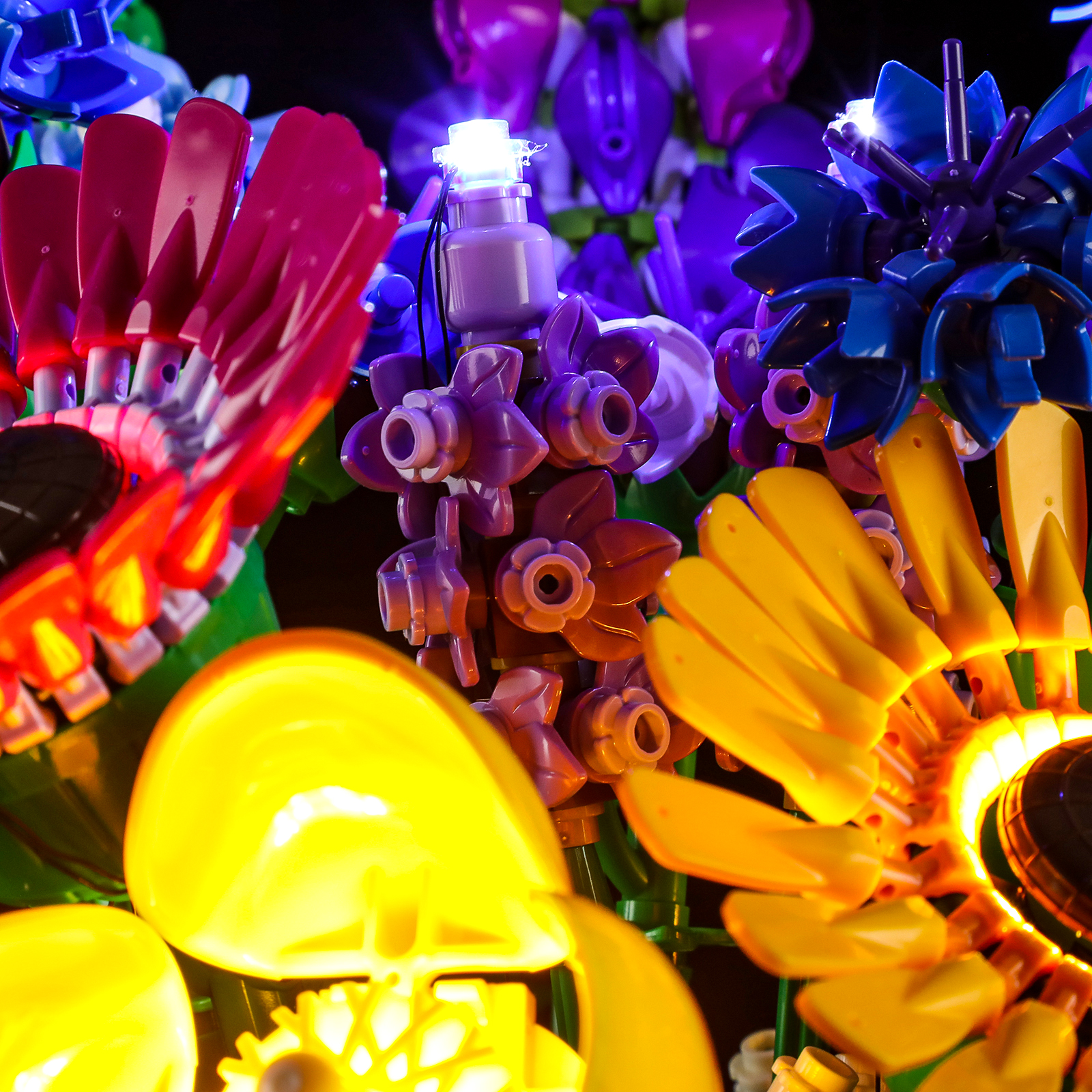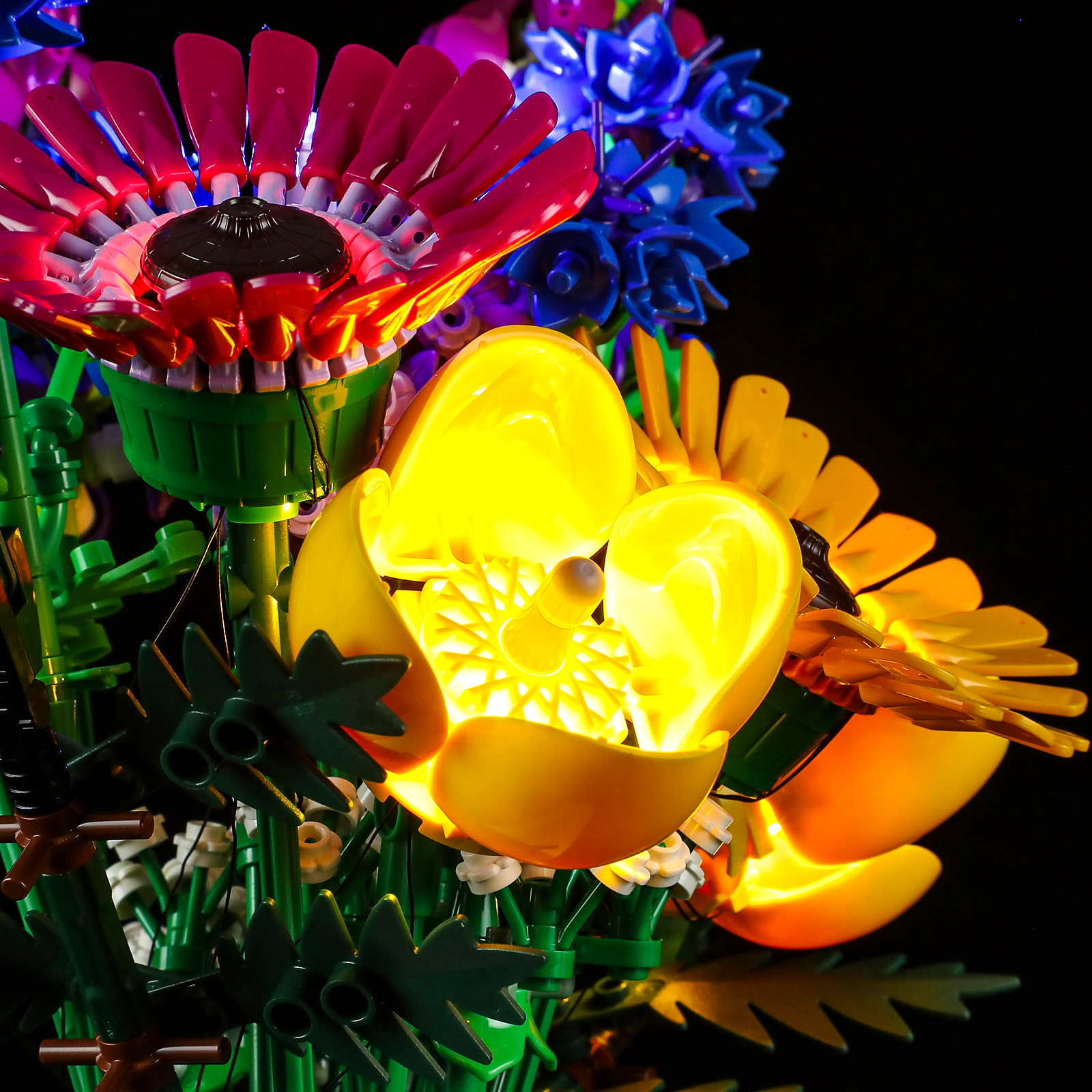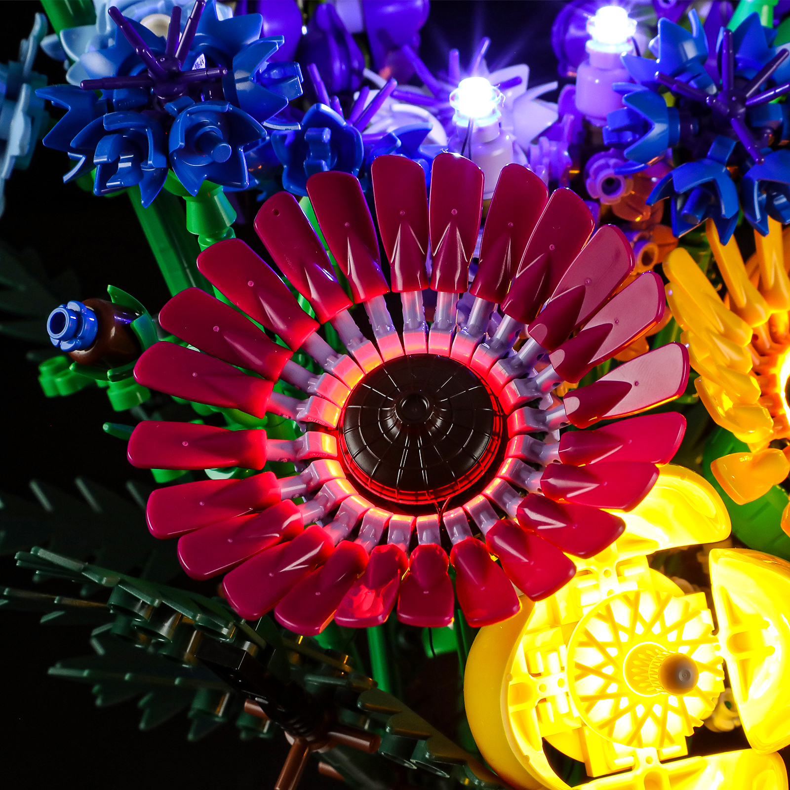 your LEGO 10313 Icons Wildflower Bouquet with this compatible LED light kit. Easy to install, it highlights every vibrant detail, creating a stunning display. Perfect gift for LEGO enthusiasts and collectors. Note: Batteries and LEGO set are not included.