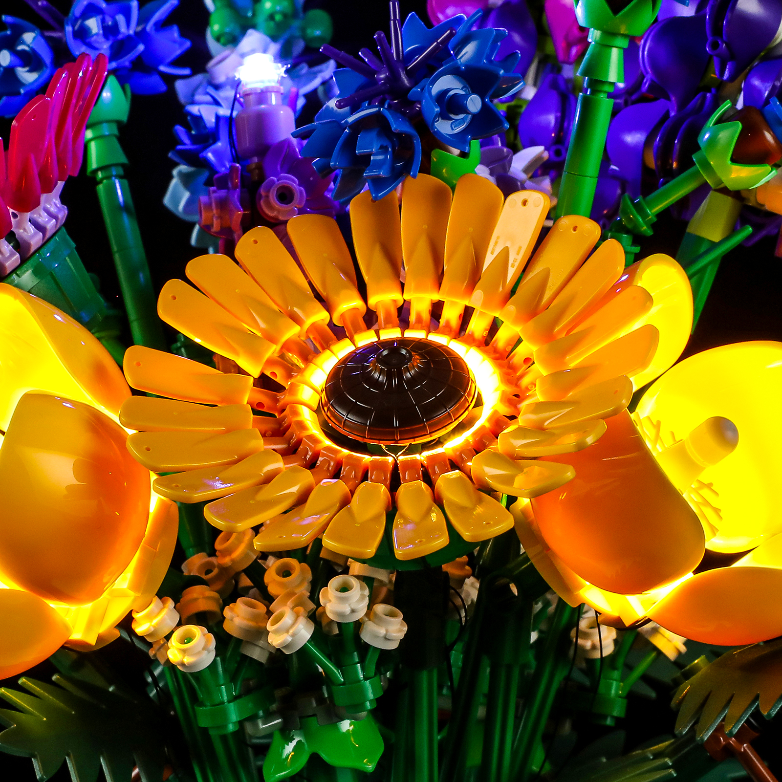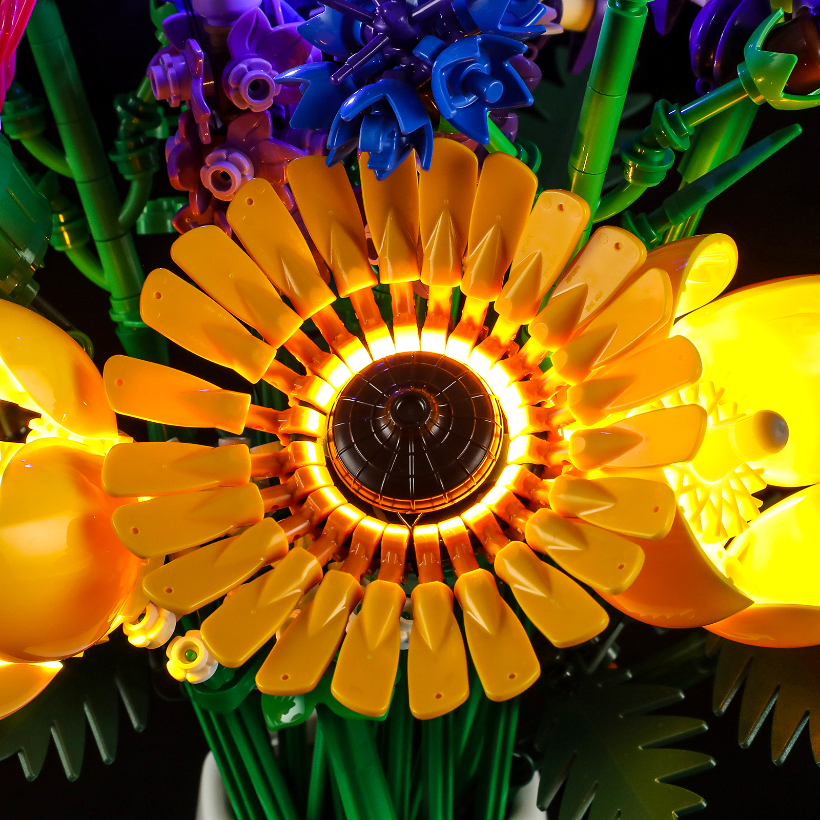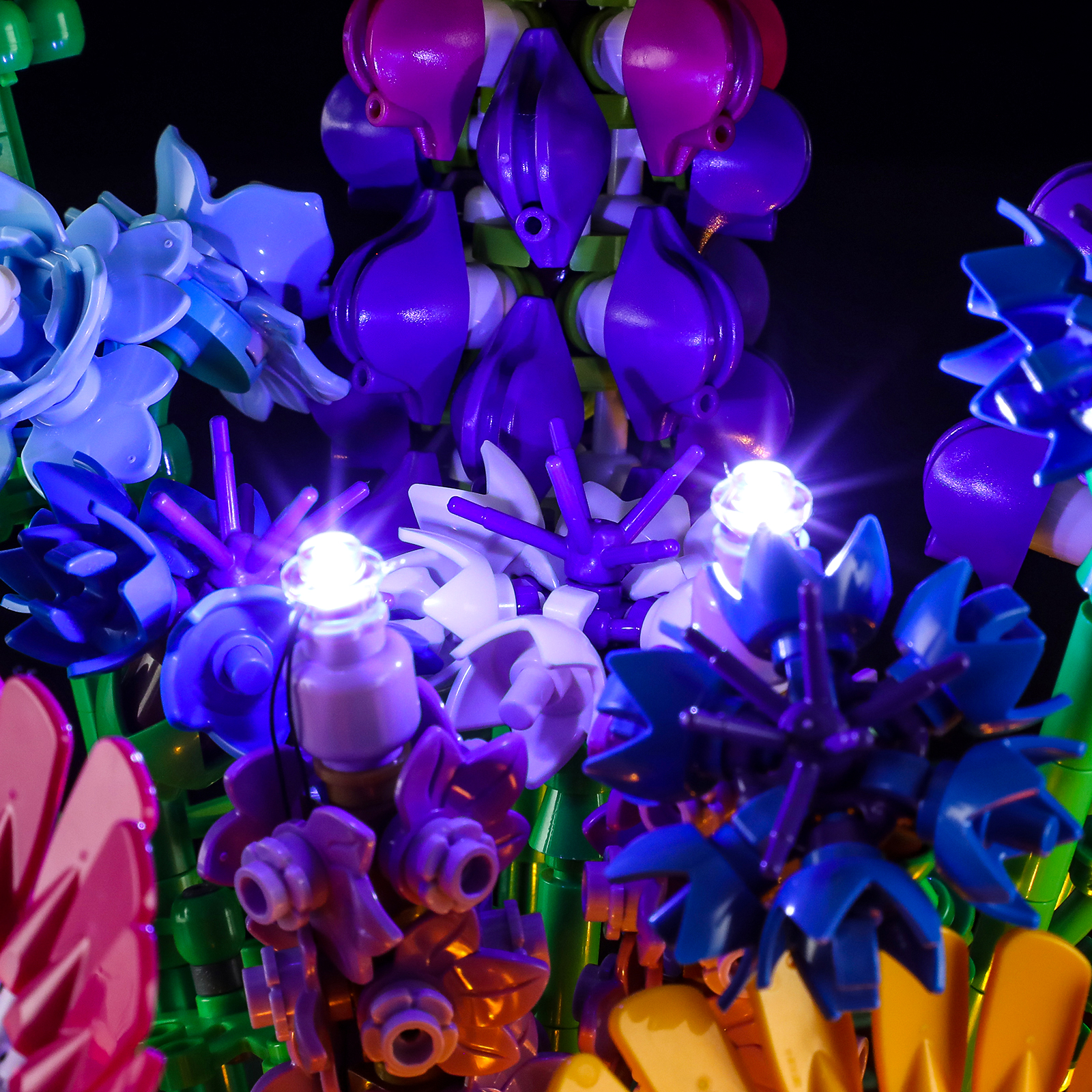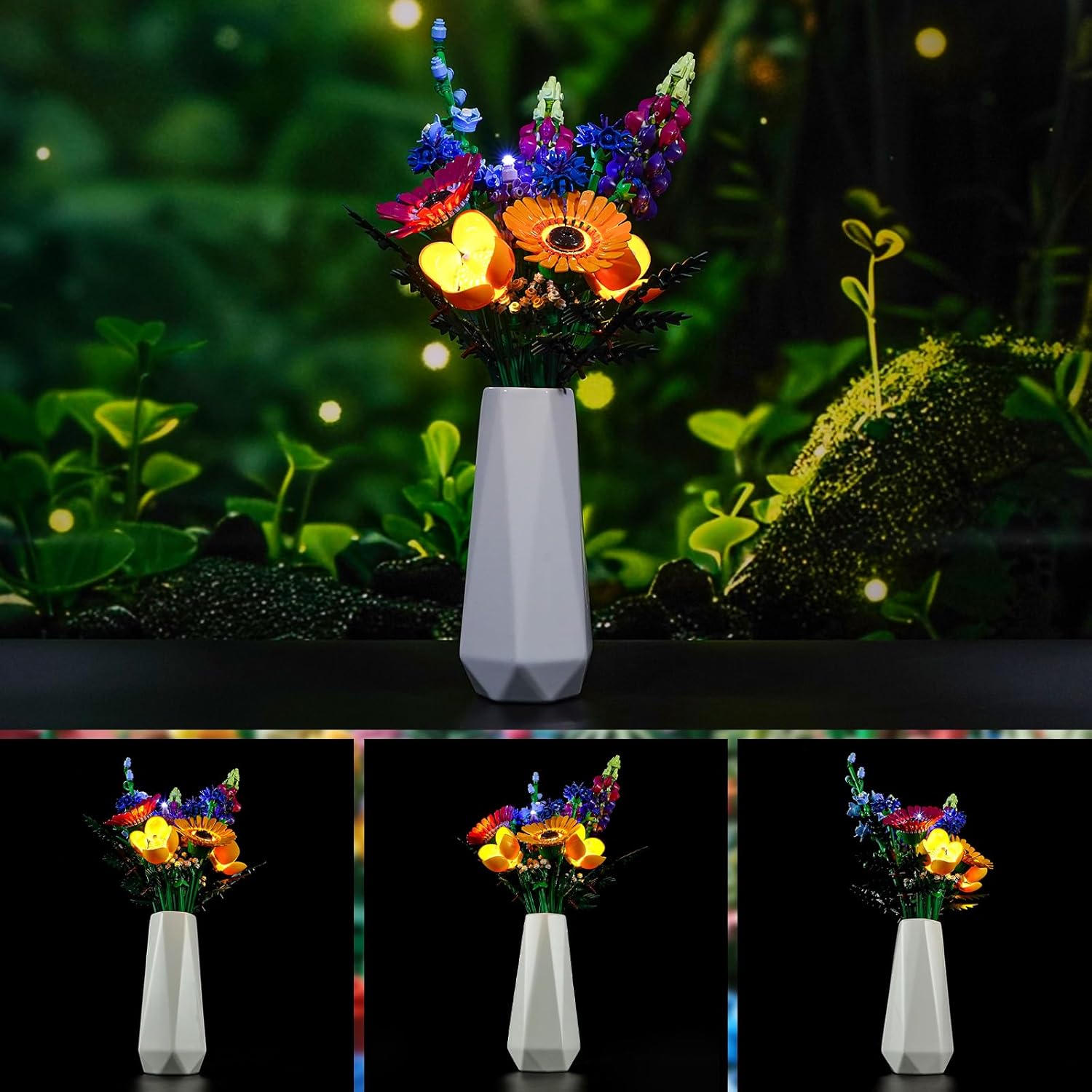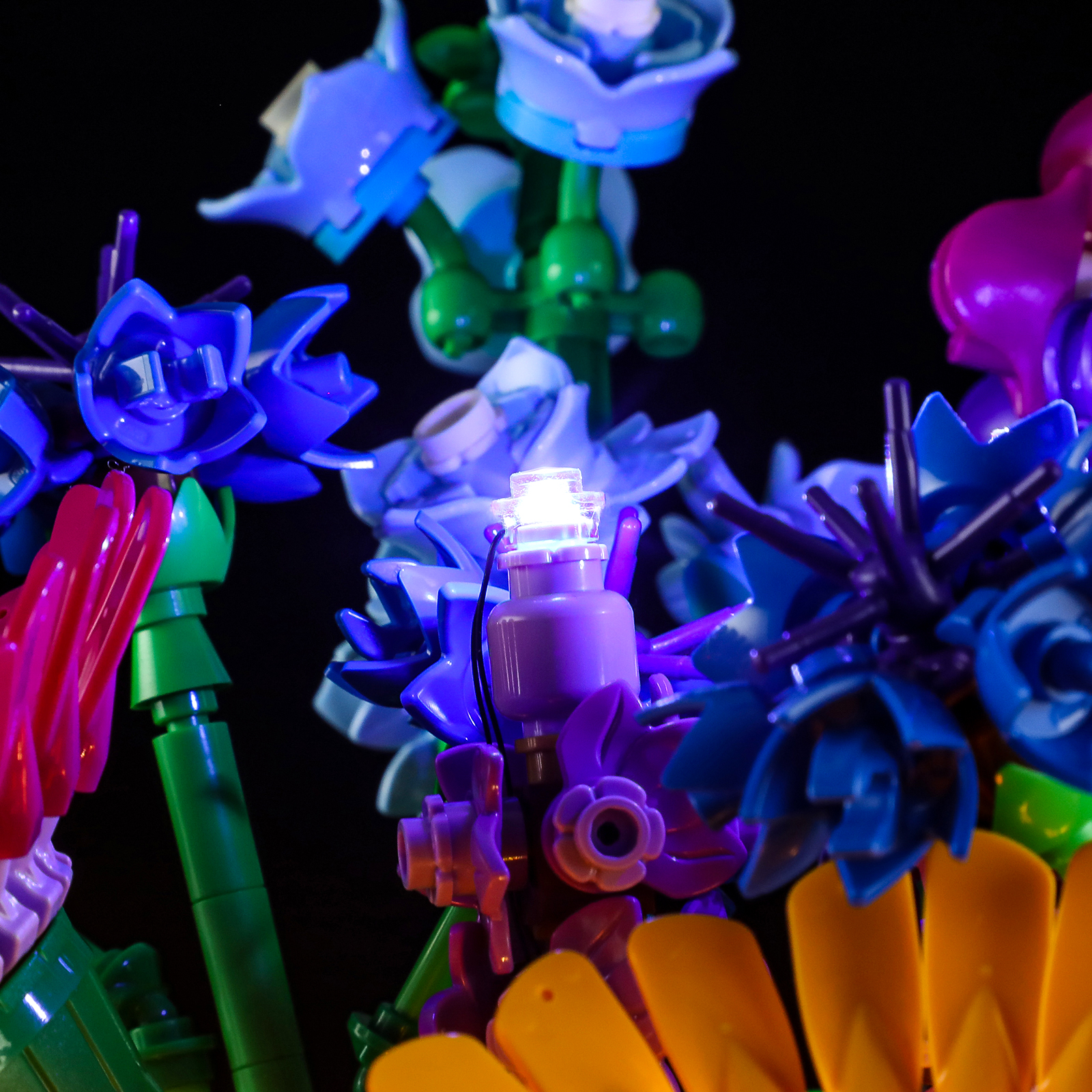 your LEGO 10313 Icons Wildflower Bouquet with this compatible LED light kit. Easy to install, it highlights every vibrant detail, creating a stunning display. Perfect gift for LEGO enthusiasts and collectors. Note: Batteries and LEGO set are not included.