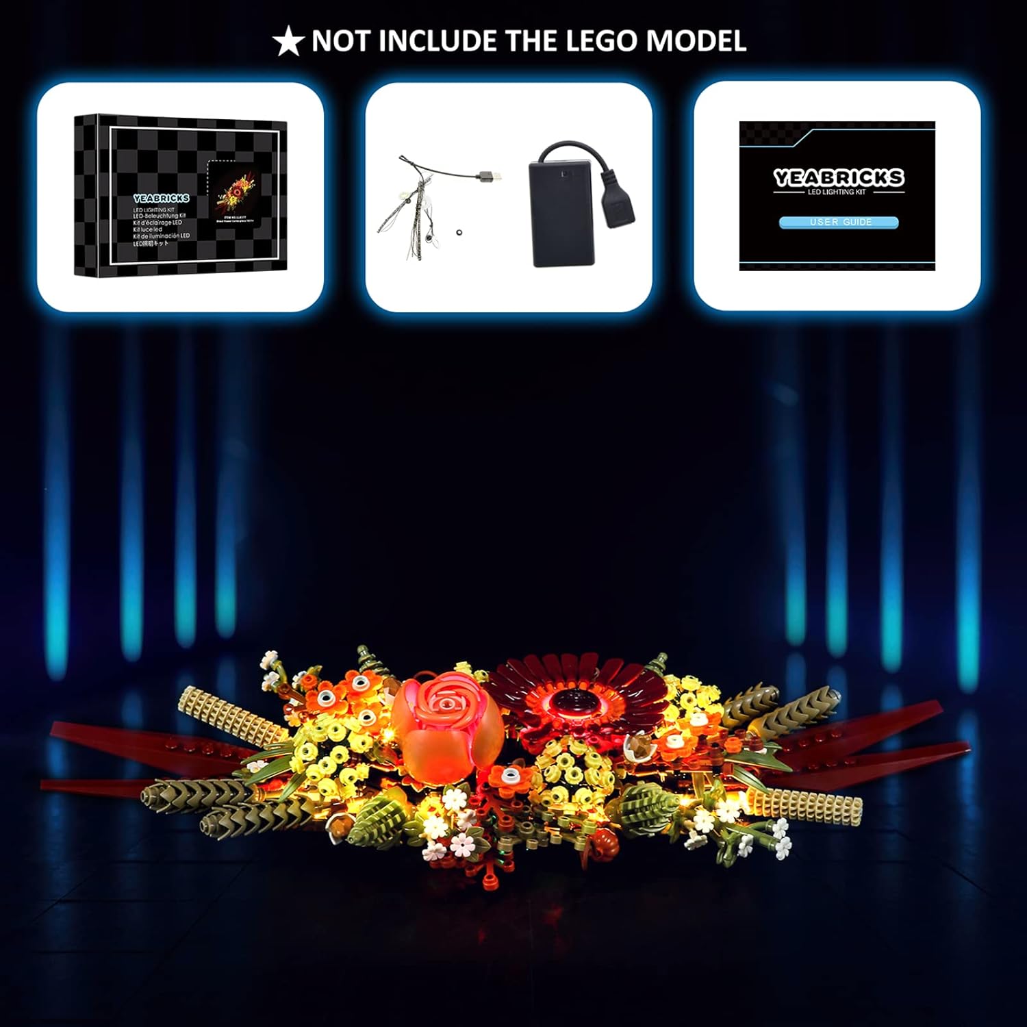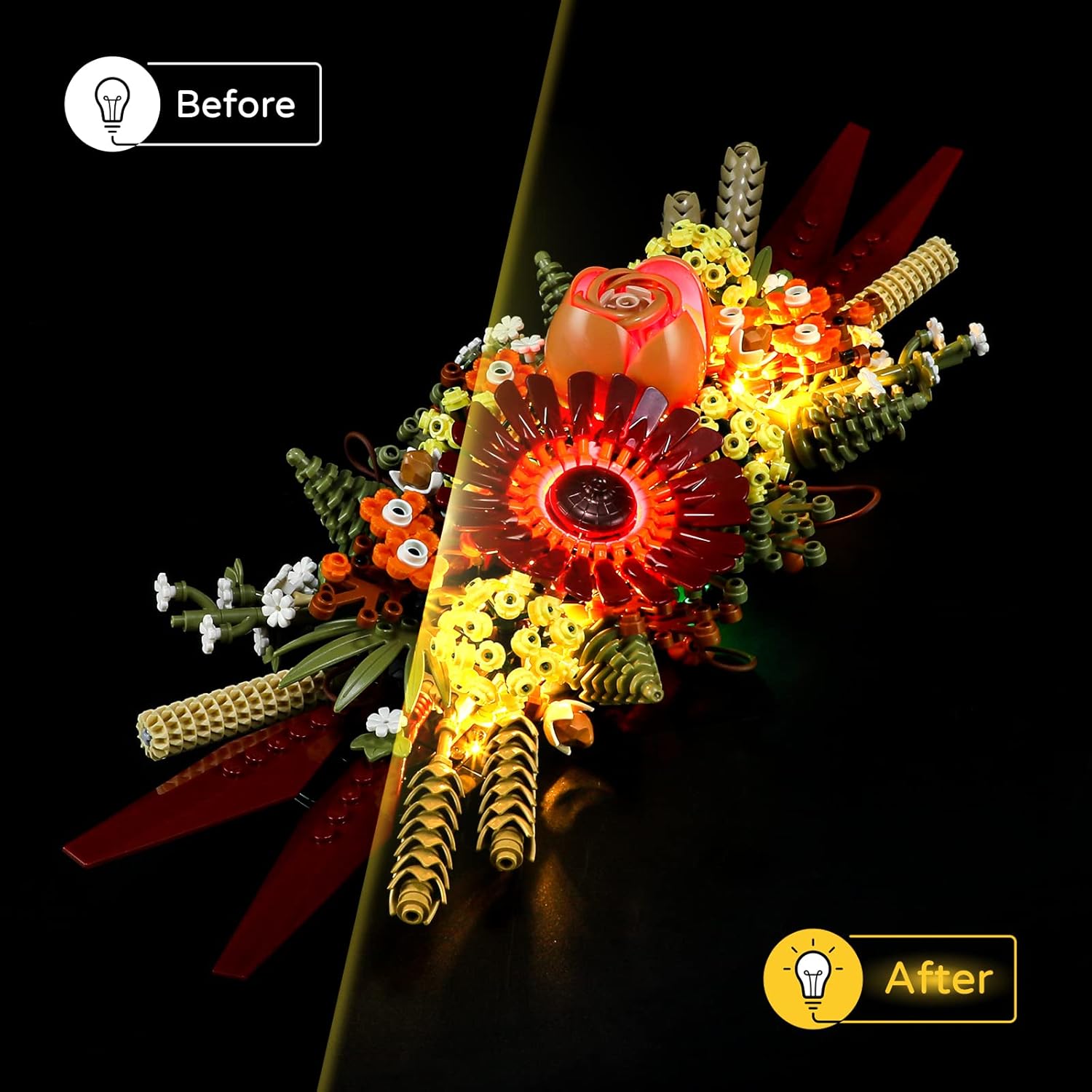 Illuminate your LEGO 10314 Icons Dried Flower Centerpiece with this compatible LED light kit. Easy to install, it highlights every delicate detail, creating a warm and vibrant display. Perfect gift for LEGO and display enthusiasts. Note:Batteries and LEGO set are not included.