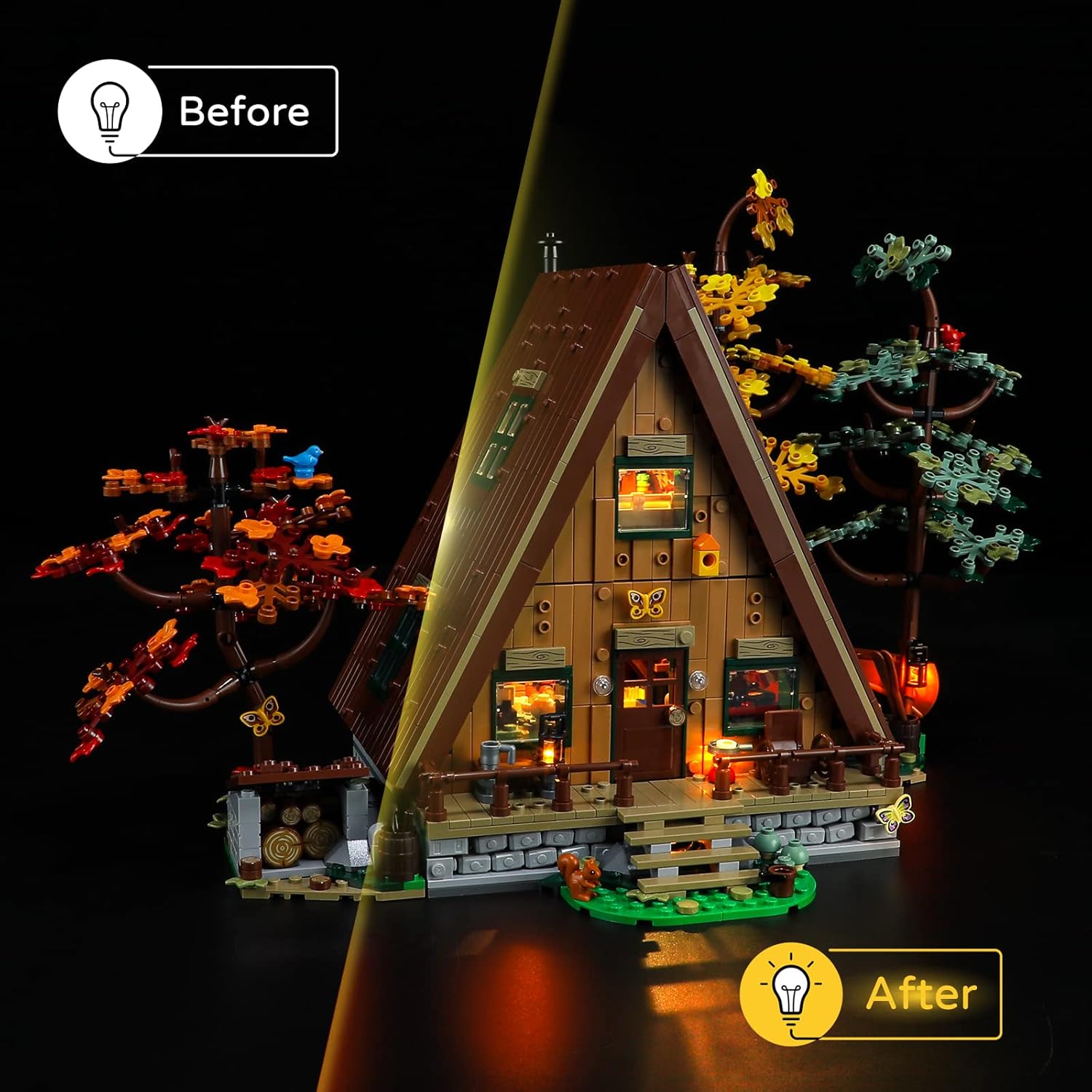 your LEGO 21338 Ideas A-Frame Cabin with this compatible LED light kit. Easy to install, it highlights every cozy detail, creating a warm, vibrant display. Perfect gift for LEGO and display enthusiasts. Note: Batteries and LEGO set are not included.