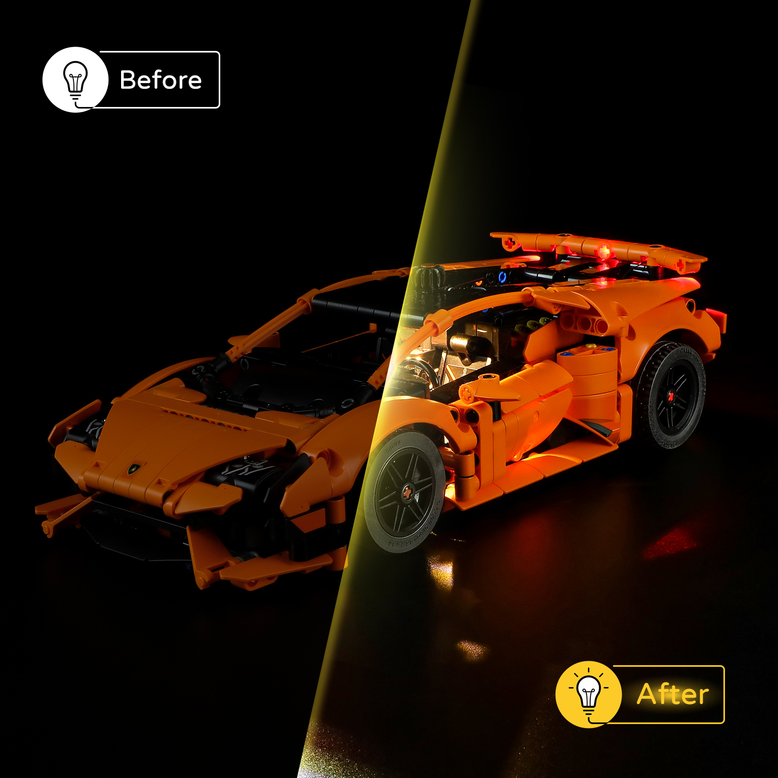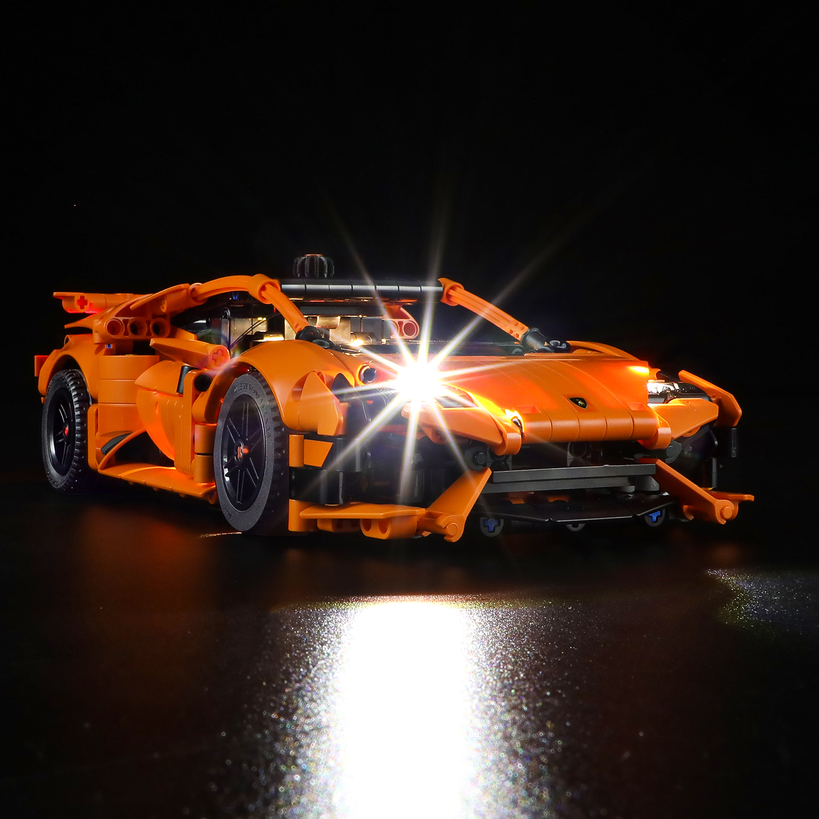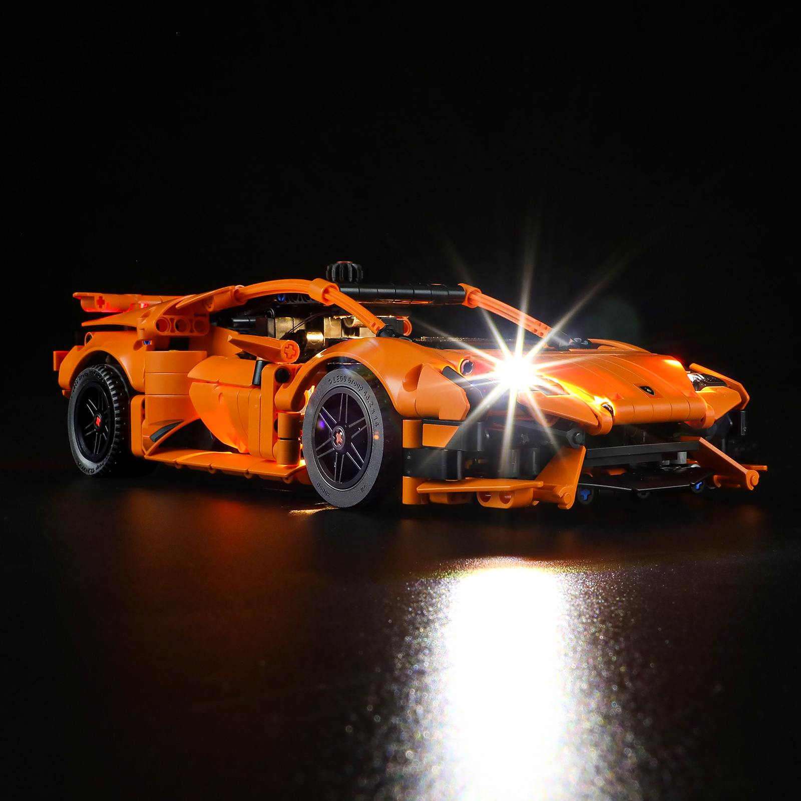 Illuminate your LEGO 42196 Technic Lamborghini Huracán Tecnica Orange with this compatible LED light. Highlight every sleek detail of your model with vibrant, warm lighting. Perfect for collectors and LEGO enthusiasts who want a stunning display.