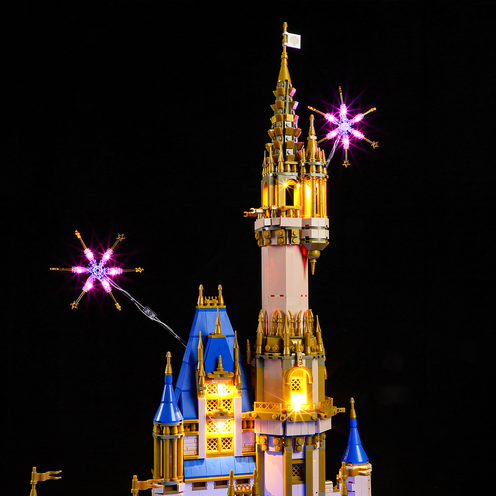 your LEGO 43222 Disney Castle with this compatible LED light kit. Easy to install, it highlights every magical detail, creating a stunning, vibrant display. Perfect gift for LEGO and Disney fans. Note: Batteries and LEGO set are not included.